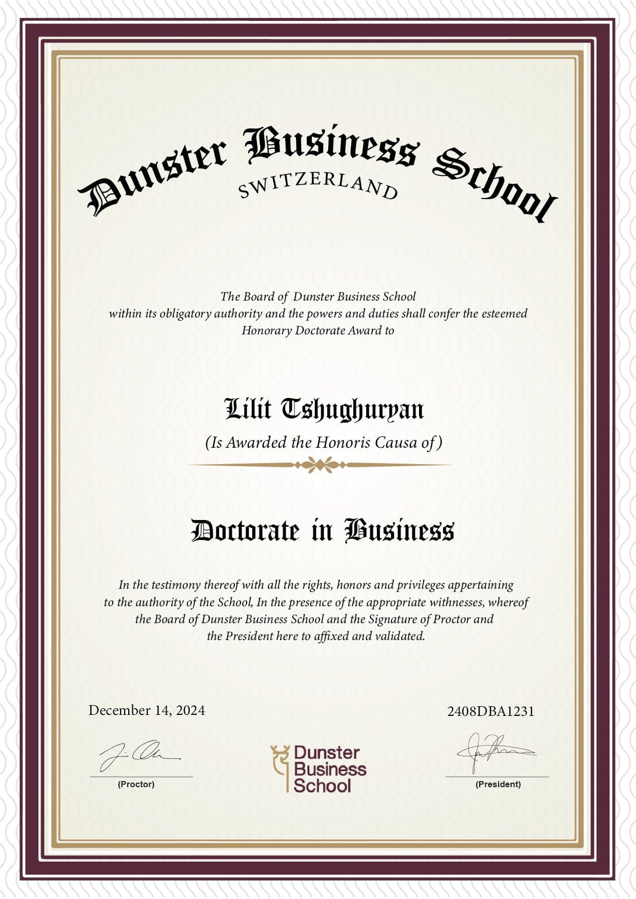 - Female Entrepreneurship Ambassador of Republic of Armenia